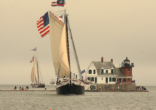 Historic schooners Victory Chimes and Stephen Taber at the Rockland Breakwater Light.