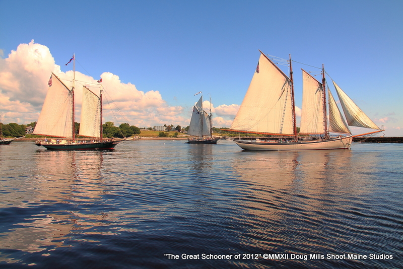 Schooners Stephen Taber, Lewis R French and American Eagle prepare for the start of The Great Schooner Race at Rockland Maine.